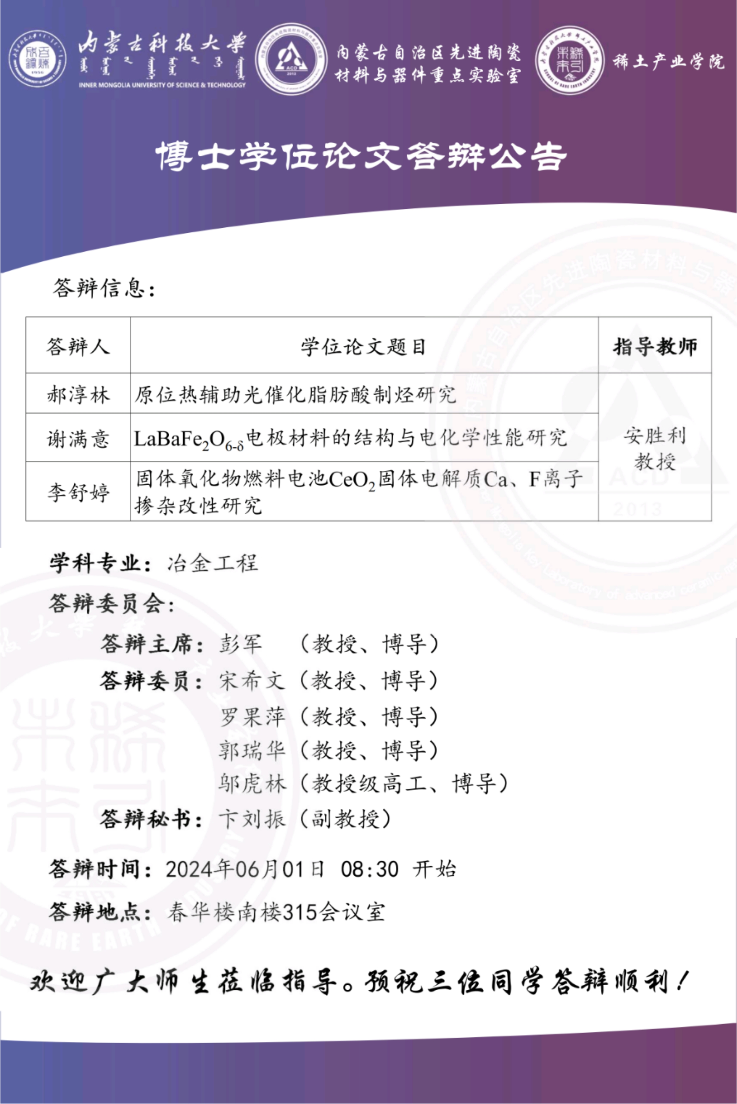 博士学位论文答辩公告